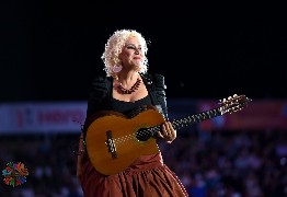 Luciana Jury, sobrina de Leonardo Favio, se presentó este lunes en el Festival Nacional de Folklore, en Córdoba.