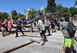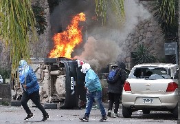 El acto electoral del Presidente en Santa Fe debió ser suspendido a raíz de incidentes entre militantes oficialistas y opositores.