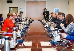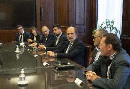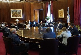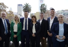 Maximiliano Pullaro, Martín Llaryora, Gustavo Valdés, Carlos Sadir, Ignacio Torres y Claudio Vidal mantuvieron un encuentro en Río Cuarto.