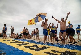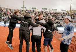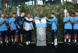 Fue la que le ofreció la orquesta de Aeropuertos Argentina 2000.El cantante Axel entonó el himno nacional. El equipo ya hizo el primer entrenamiento en Barcelona