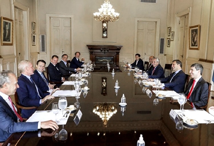 El primer mandatario recibió en la Casa Rosada a Javier Madanes (Aluar), Alejandro Simón (Sancor Seguros), Hugo Eurnekian (Corporación América), Marcelo Mindlin (Pampa Energía), Francisco De Narváez, Jorge Brito (Banco Macro), Juan Martín de la Serna (Mercado Libre y Marcos Bulgheroni (PAE) en una comida que duró más de dos horas y media.