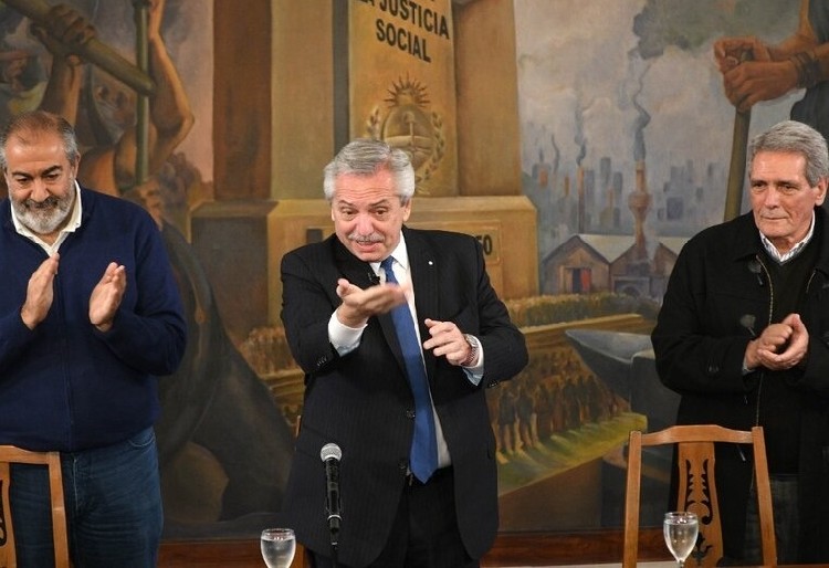 Ya en el salón, Fernández habló acompañado por Daer y Acuña y dos integrantes de la juventud sindical. El Presidente abrió su discurso haciendo una breve síntesis de la historia de Perón donde destacó la transformación que vivió la Argentina con la aparición del entonces coronel. "Hubo un antes y un después" dijo tras enumerar los cambios en la educación, la salud y los derechos laborales, advirtió que fueron esas y no otras las razones por la que los poderes fácticos de la Argentina lo combatieron, lo derrocaron, lo persiguieron, lo proscribieron y lo obligaron al exilio. "Como siempre pasa, darle tantos derechos a los sectores populares generó el malestar entre los poderosos", aseguró el mandatario.