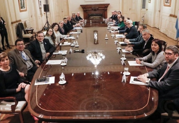 "Junto a las ministras y ministros mantenemos un nuevo encuentro de Gabinete para profundizar la agenda federal y coordinar acciones que promuevan el desarrollo del país. Queremos más producción, trabajo e igualdad para todas y todos #Integración #Federalismo", publicó el jefe de Gabinete en su cuenta de Twitter apenas iniciada la reunión a las 7.40 en el Salón Eva Perón, ubicado en el primer piso de la Casa de Gobierno.