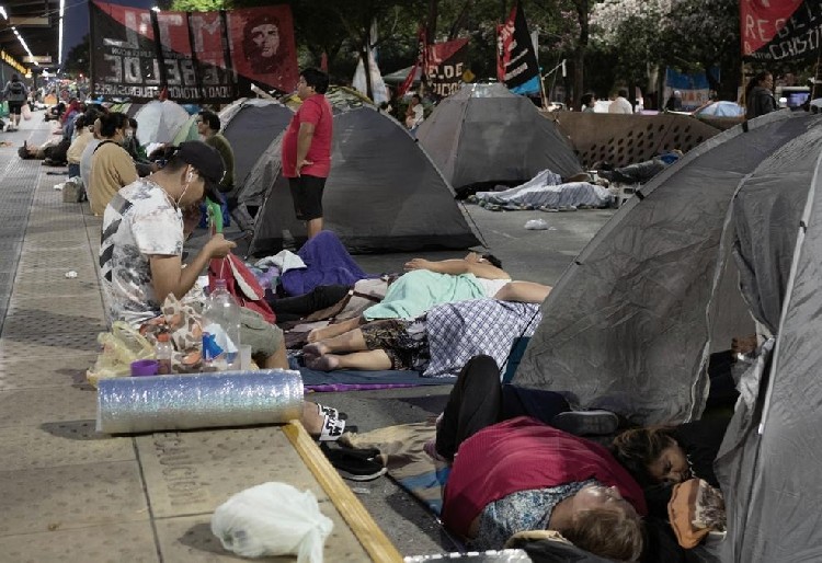 Continúa el acampe de Unidad Piquetera en la 9 de Julio