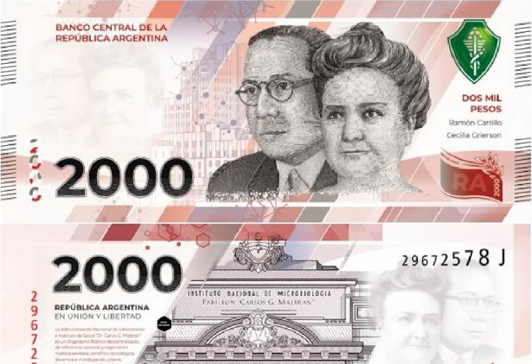 El directorio del Banco Central (BCRA) aprobó este jueves la emisión de un nuevo billete de $2.000 que se integrará a la actual Línea Peso. Contará con imágenes de Cecilia Grierson y Ramón Carrillo en homenaje a protagonistas del desarrollo de la ciencia y la medicina en Argentina. Según trascendió, la idea es que salgan en los próximos meses y también se analiza la posibilidad de lanzar uno de $5.000.