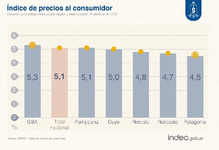 El INDEC señaló que la inflación de diciembre de 2022 fue del 5,1%