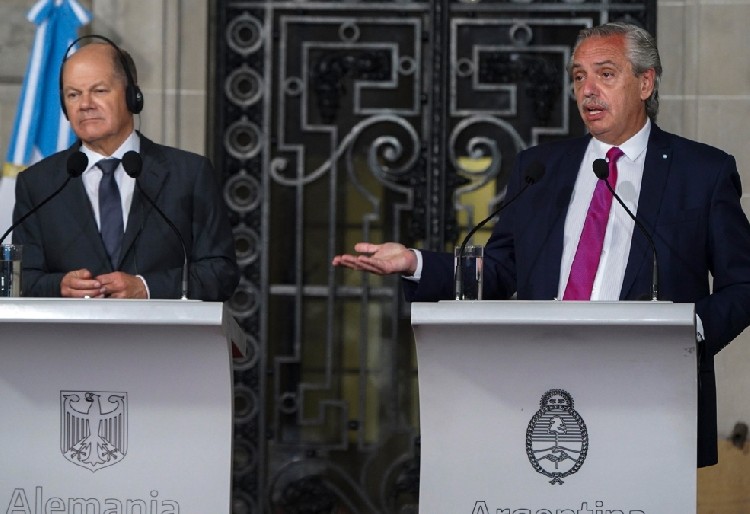 Scholz, por su parte, afirmó que a su país le “interesa tener una cooperación estrecha con Argentina en materia energética” y expresó que ambos países deben cooperar sobre “el cambio climático”. Asimismo, consideró que debe haber un “espíritu constructivo” en las negociaciones entre la Unión Europea y el Mercosur.