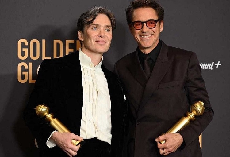”Una historia arrolladora sobre el dilema ético de las armas nucleares recauda mil millones de dólares... ¿les suena? No. A no ser y porque [el estudio] Universal apostó fuerte por Christopher Nolan para dirigirla”, dijo Robert Downey Jr. al recibir su Globo al mejor actor de reparto.
