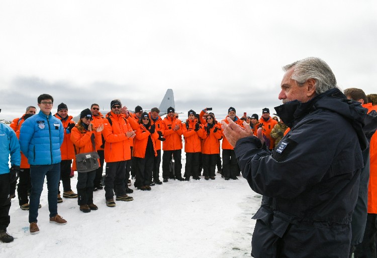“Recorriendo las estaciones científicas radicadas en la Antártida, observando la tecnología que han desplegado, viendo las actividades que día a día aquí se desarrollan, no podemos más que pensar en el futuro. En nuestros mares del Sur está el futuro y la Antártida parece convertirse así en ese horizonte de proyección en donde el futuro nos espera”, insistió Alberto Fernández al hablar de los próximos años del país.