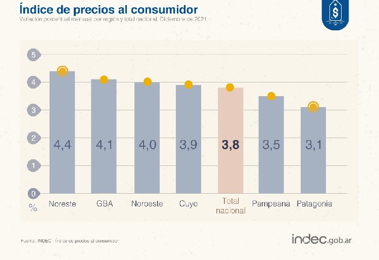 La inflación de diciembre fue de 3,8% y de 50,9% en 2021