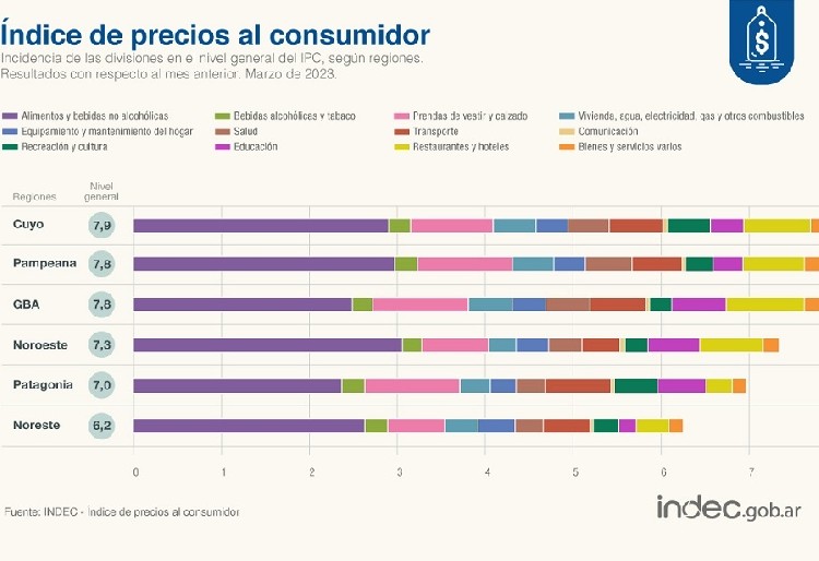 Varios factores jugaron en la construcción del 7,7%. Para Rocio Bisang, economista de Eco Go, en primer lugar "hubo subas estacionales tipicas de esta epoca del año en sectores como indumentaria (por el cambio de temporada) y educación (comienzo de clases)". El segundo elemento que destaca es que el aumento en regulados "fue brutal en marzo (8,3%), en un contexto donde el gobierno no puede permitirse continuar usando los precios regulados como ancla por la necesidad de bajar el gasto, lo que lleva a una administración de subas a cuentagotas que echa leña al fuego y contribuye a la aceleracion de la inflación".