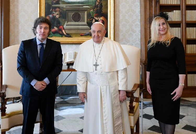 "No me tenía en esa tarea, pero si usted me lo pide, lo hago", le dijo Milei al Papa, haciendo referencia a una conversación previa que no trascendió, al entrar en la Biblioteca del segundo piso del Palacio Apostólico a las 9 horas locales (5 en Argentina), en donde estuvo hasta las 10 para una reunión privada, informaron fuentes vaticanas a Télam.