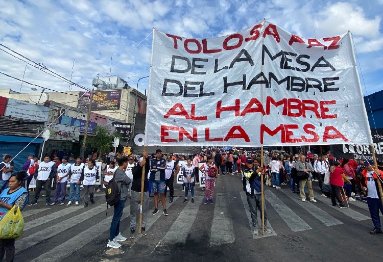 “La ministra Tolosa Paz empezó con la mesa contra el hambre y es hoy la que lleva el hambre a las mesas. El Gobierno lleva adelante una política de ajuste que hambrea a les trabajadores y saquea a los jubilados”, afirmó el comunicado firmado por las principales organizaciones piqueteras opositoras, entre las que se encuentran el Polo Obrero, Barrios de Pie- Libres del Sur y el MST- Teresa Vive.