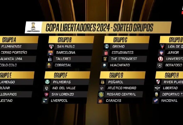 Y el Grupo E lo conformarán Flamengo de Brasil, Bolívar de Bolivia, Millonarios de Colombia y Palestino de Chile.