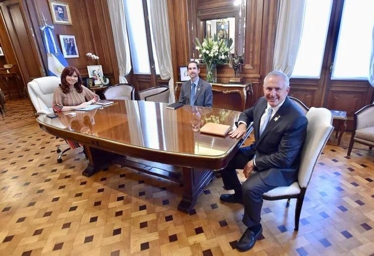Casi en simultáneo con la presentación del proyecto, la titular del Senado recibió en su despacho del Congreso al embajador de Estados Unidos en la Argentina, Mark Stanley.